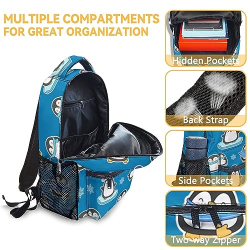 Penguin School Backpack for Little Girls, Boys - 16 Inches Blue Backpacks for Student - Carry Cute Bookbag for Kindergarten, Elementary 5