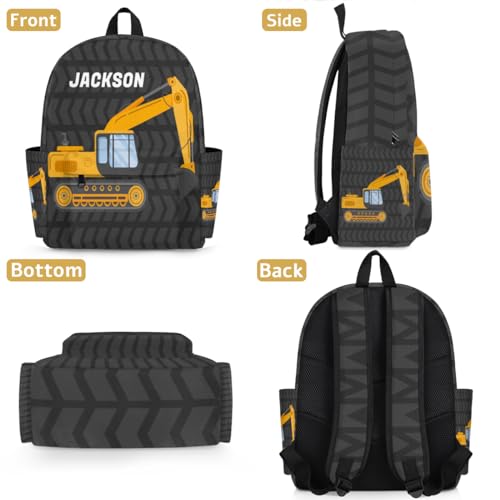 Excavator Truck Customized Kids Backpack for Boys Cool Car Personalized Preschool Toddler Backpack Kindergarten Nursery Bookbag Travel Children School Bag 4