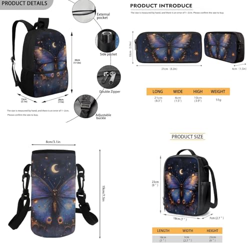 More information about Aesthetic Butterfly Backpack for Elementary School Girls Cute 4 Pcs School Backpack Set Girls Bookbag Age 10-12 Travel Daypack Aesthetic School Bag and Lunch Box Set for Teen Women