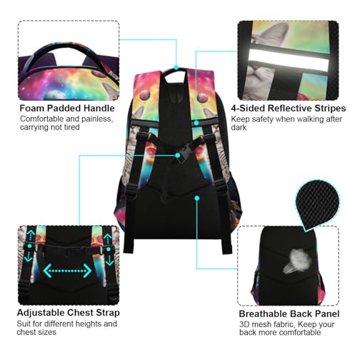 Cat Pizza Planets Backpack 3rd 4th 5th Grade School Bookbag Travel Laptop Daypack Bag for Boys Girls 6