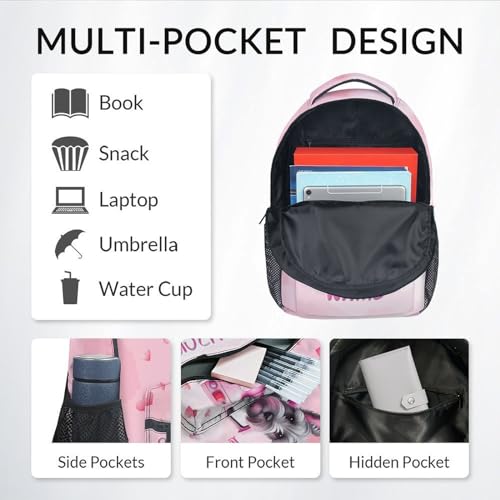 • Large Capacity Backpack: Our school backpacks is 17 inches and has multiple pockets, including 1 main pocket, 1 front pocket, 2 side pockets and 4 interior compartments. Keep your life organized and efficiently carry your school essentials in this cute backpack