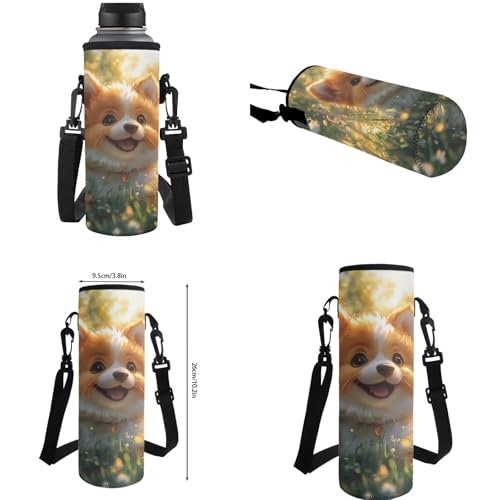 • Water Bottle Holder: Made of Neoprene material, 3.8"L x 10.2"H. Removable and adjustable shoulder strap for easy carrying. Suitable for school, work, travel, camping, hiking and other outdoor sports.