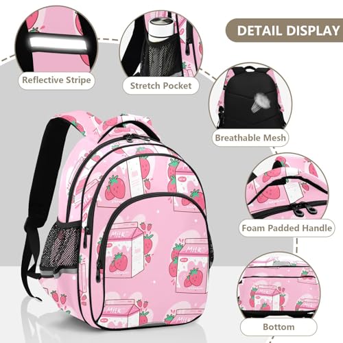 Carton Strawberry Milk Backpack for Kids Elementary School Bag Boys Girls Bookbag Travel Backpack Daypack 7