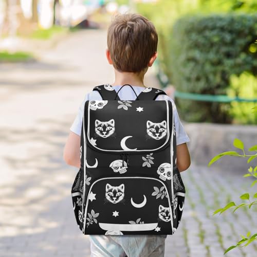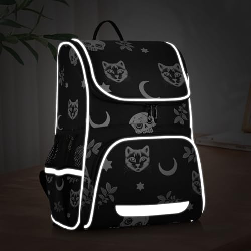 HOT ! Goth Skull Cat School Backpack For Girls Boys Elementary Bookbag With Reflective Strips