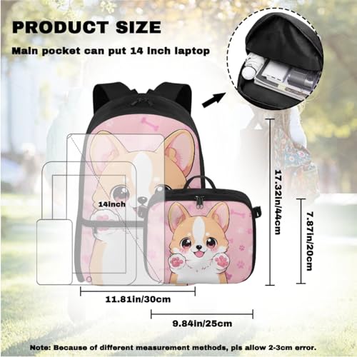Doojoayie School Backpack for Girls 8-10 10-12 Kawaii Corgi Backpack with Lunch Box Kids Girls Bookbag Ages 4-6 Elementary Kindergarten Daypack with Insulative & Detachable Lunch Box 4