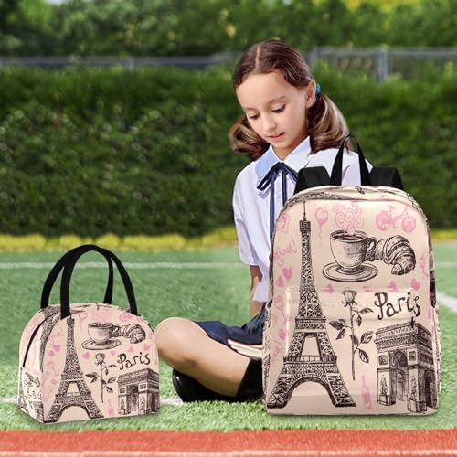Paris-symbols Kids Backpack for Girls Boys Kindergarten Elementary School Backpacks Set with Lunch Box 7