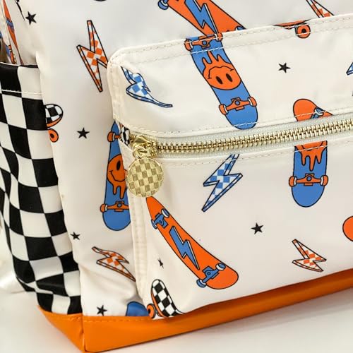 Noa Jayne Co. Boys 16" Backpack Ages 5–8 – Retro Skateboard & Checkered School Bag | Trendy Lightweight Durable Kids Backpack for Elementary & Travel 3
