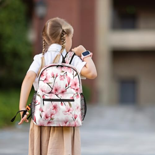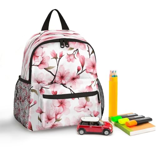 Toddler Backpack for Boys Girls, Pink Japanese Floral Cherry Blossom Mini Kids Backpacks with Chest Strap Whistle, Preschool Kindergarten Daypack, Travel Bookbag for Children 5