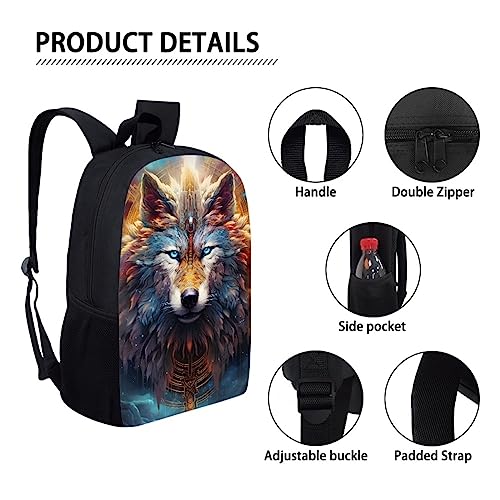 ENLACHIC Cool Mysterious Wolf Backpack for Boys Girls Schoolbag Large Capacity Laptop Backpack College Bookbag Backpack 5