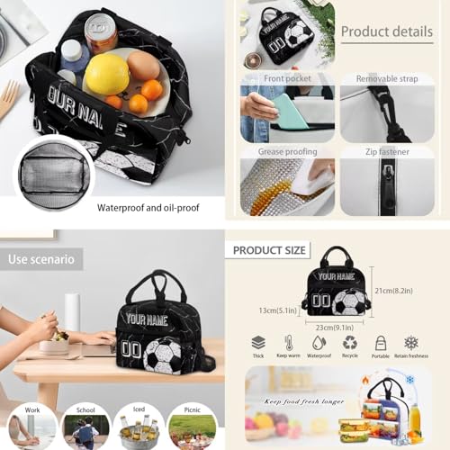 Personalized School Bookbag Set for Boys, Soccer School Backpack with Lunch Box Pencil Case, Marbled 3 Pack School Bag Set for Elementary Junior School, Customize Your Text Name Logo 5