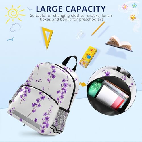 Purple Flowers Leaves Small Toddler Boy Backpack with Leash Kids School Backpacks Travel Book Bag 1