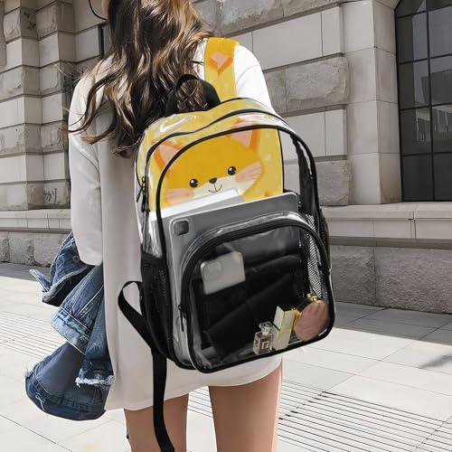 Cute Cartoon Yellow Fox Kid Clear Backpack Clear Book Bag For Teen Girls Transparent PVC Backpack 7