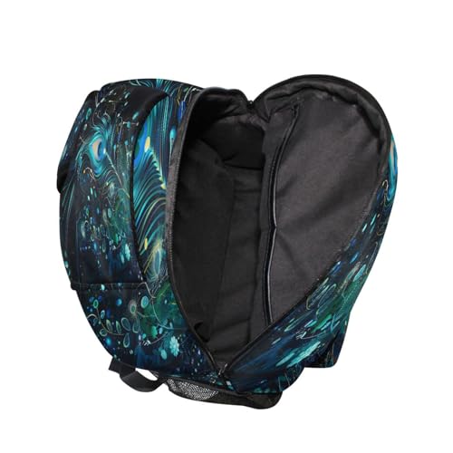 Peacock Feather Black Backpack for School Boys Girls Adults Kids Bookbag Laptop Bag 15L 6
