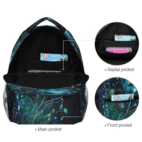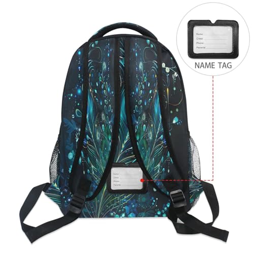 Peacock Feather Black Backpack for School Boys Girls Adults Kids Bookbag Laptop Bag 15L 7