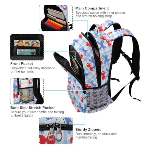 Cherry Blue Bow Grid Pattern Backpacks for Kids School Bag Student Backpack Bookbag For Boys Girls Casual Bag 7
