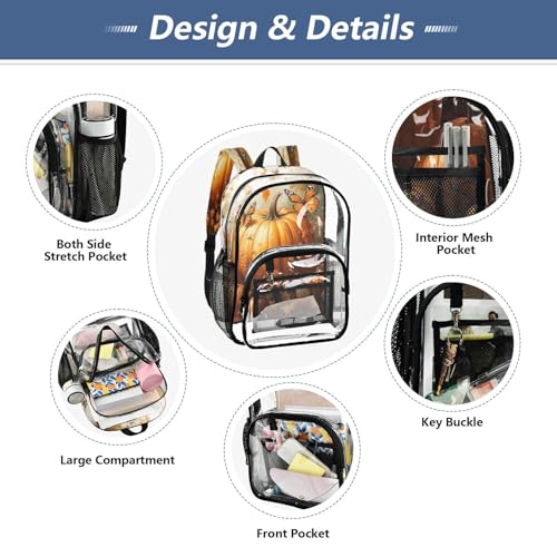 More information about Clear Backpack for School Pumpkin Butterflies Transparent Bookbag for Girls See Through PVC Boy Backpacks