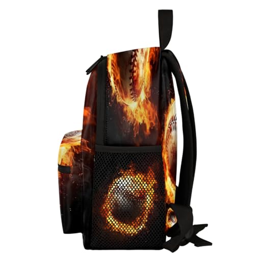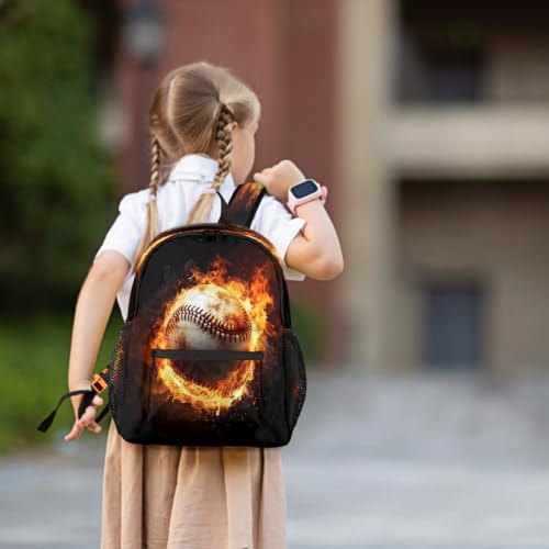 Shabby Burning Baseball Kids Backpack for Boys Girls, Waterproof Lightweight Toddler School Bag with Chest Strap, Small Travel Book Bag Preschool Kindergarten Backpack 4
