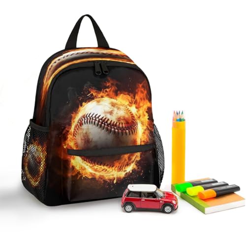 HOT ! Shabby Burning Baseball Kids Backpack for Boys Girls, Waterproof Lightweight Toddler School Bag with Chest Strap, Small Travel Book Bag Preschool Kindergarten Backpack