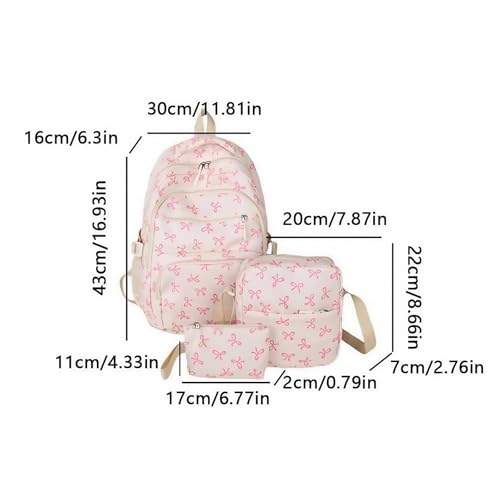 • Three-Piece Backpack Set:Thisbow backpack for girls includes a 16.9-inch backpack, an 8.7-inch storage bag, and a 6.8-inch small bag, offering a complete storage solution for all your essentials. Whether you're heading to school, or a weekend getaway, this set has you covered