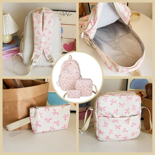 3 PCS Bow Backpack for Women,Portable Large Capacity Computer Bag,Comfortable Nylon Girls Shoulder Bag for Everyday Use 4