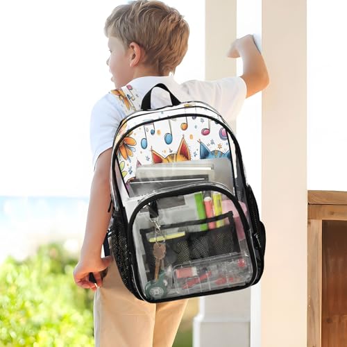 • Unique Design: The main body of the clear bag is made of transparent PVC, with printed patterns on the back and shoulder straps. Make you different from other transparent backpacks.
