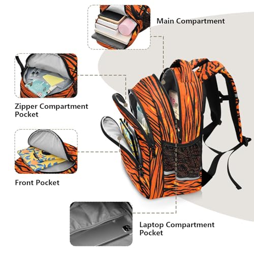 17 Inch Kids Backpack for Girls Boys, Backpack for Boys Elementary School, Tiger Print Orange Black 6