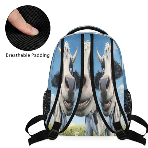Cute Cow Daisy Flower Kids Backpack, Lightweight School Bookbag Large Capacity Laptop Backpack Water Resistant Daypack Shoulder Bag for Teenager Boys Girls 7