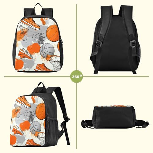 DOMIKING Basketball Shoes Orange Kids Backpack for Girls Boys Elementary School Kindergarten Backpack for Kids Toddler Bookbag School Bag Age 3-6 4