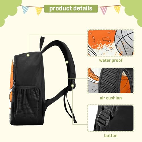 DOMIKING Basketball Shoes Orange Kids Backpack for Girls Boys Elementary School Kindergarten Backpack for Kids Toddler Bookbag School Bag Age 3-6 3