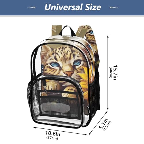 More information about Leopard Cat Sunflower Cute Clear Backpack, PVC Transparent Bag with Large Capacity for Boys, Girls, Men, Women, See Through Bookbag for School Work College Travel