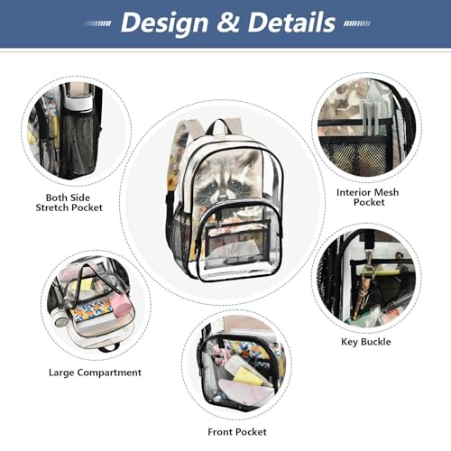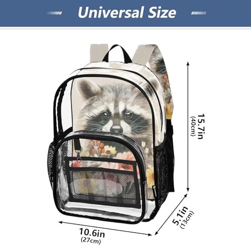 More information about Raccoon Flowers Cute Clear Backpack, PVC Transparent Bag with Large Capacity for Boys, Girls, Men, Women, See Through Bookbag for School Work College Travel
