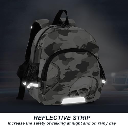 Kid's Backpack for Boys & Girls Toddler Bag Graphic Skulls Gray Camouflage Backpack with Safety Leash 7