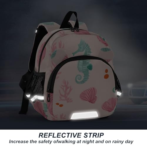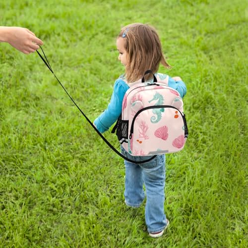 Kid's Backpack for Boys & Girls Toddler Bag Green Seahorse Pattern Backpack with Safety Leash 7