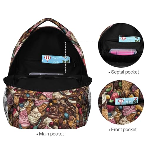 Strawberry Ice Cream Chocolate Backpack for School Boys Girls Adults Kids Bookbag Laptop Bag 15L 1