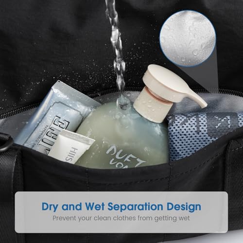 • 【Dry and Wet Separation Design】The mini duffle bag features an independent waterproof PVC pocket to store wet towels, toiletries, and dirty clothes. It keeps your clean items dry.