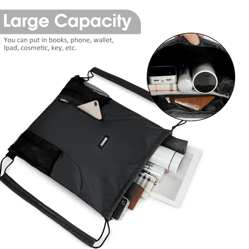 WANDF Drawstring Backpack with Shoulder Pad Sports Gym Backpack with Mesh Pocket String Bag for Women Men(Black) 6