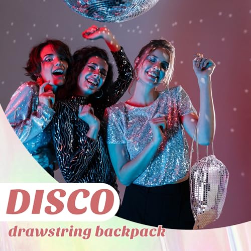 1 Piece Disco Drawstring Bag Sequin Backpack Silver Gym Bag Decorations for Birthday Gift 70s 80s 90s Last Disco Party Favor 6