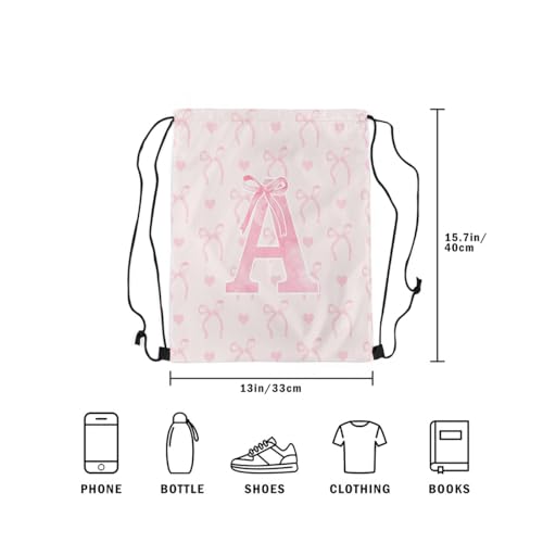 Erosebridal Initial Letter A 13x15.7 For Sport Gym Swim Yoga Pink Alphabet String Bag Romantic Butterfly Knot Sackpack Kawaii Love Hearts Reversible foldable Bowknot Cinch Bag 4