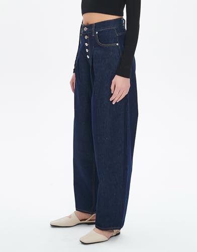 Ladyful Womens Wide Leg Barrel Jeans Baggy High Waisted Jeans Boyfriend Loose Trendy Denim Pant Trouser 4