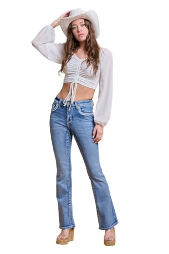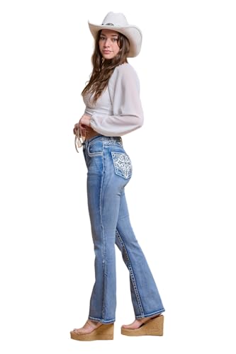 High Waisted-Rise Embroidered Feather Bootcut - Curvy Women’s Stretchy Flare Denim Jeans 6
