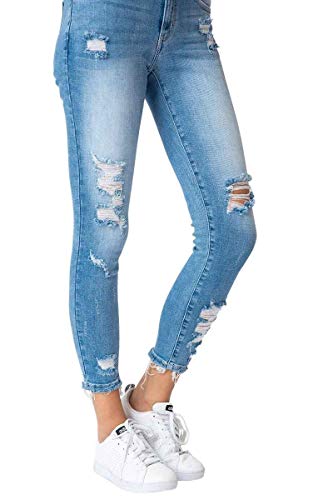 HOT ! Kancan Jeans Women's Five Pocket High Waist Distressed Denim Jean - KC8373