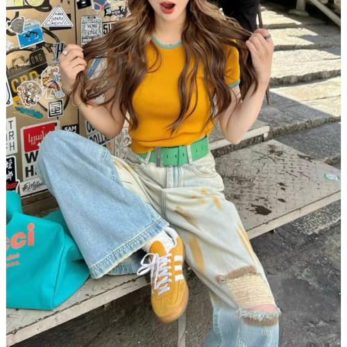 • 🌟 Retro Gradient Ripped Wide Leg Jeans Vintage-distressed "old, dirty" wash with gradient color fading, paired with ripped knee details and loose high-waisted straight legs for grunge-inspired street style. Reinforced stitching ensures durability.