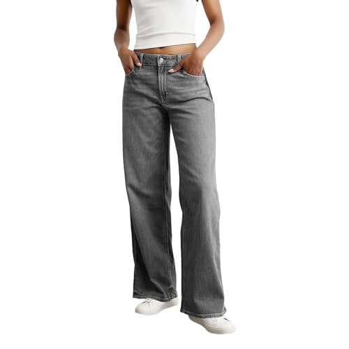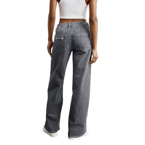 HOT ! Womens Jeans Straight Leg Mid Rise Work Jeans Wide Leg Casual Baggy Loose Jean Cute Cinch Wasit Restro Jean with Pockets Boyfriend Comfy Travel Pants Bell Bottom Flare Low Rise Pants Clothes