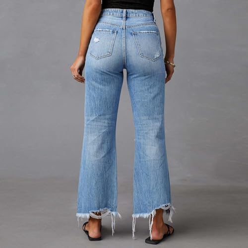 • Material: Women high waisted straight leg jeans made of soft stretch denim fabric. Even after repeated wearing, this raw hem shorts length above the knee stays true to original form. Soft, stretchy and lightweight denim fabric,super comfy to wear in the summer. High waisted jean shorts stretchy denim shorts for women Shorts for women girls distressed casual denim high rise shorts. Bell bottom Jeans for women, high rise design accentuates your waistline classic pockets and full length design.