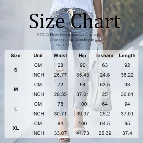HOT ! fanmpghleoo Ripped Jeans Womens Drawstring Elastic High Waisted Skinny Jeans Stretch Distressed Raw Hem Cropped Denim Joggers