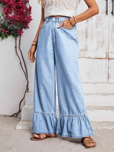 Women's Mid-Rise Jean Casual Ruffled Hem Wide Leg Jeans 6