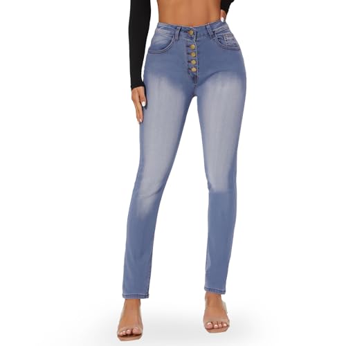RIOJOY Skinny Stretchy Jeans for Women High Waisted Butt Lift Button Fly Jeans Slim Fit Denim Pants 7