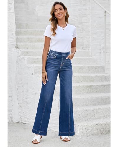 • Womens wide leg jeans come with elastic pull on waistband, ensuring a customizable fit and allowing for easy dressing and flexibility in movement.