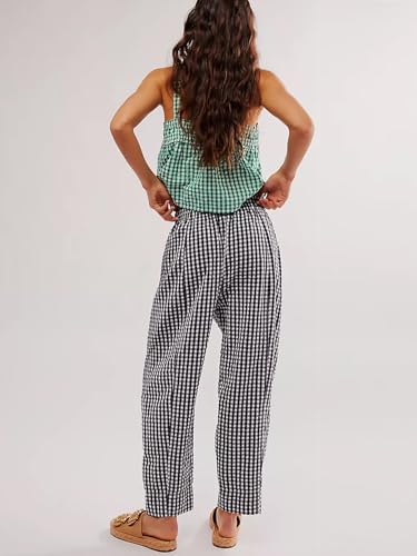 More information about Women's Plaid Pant Gingham Lounge Pants Wide Leg Mid Rise Elastic Waist Checkered Long Trousers with Pockets