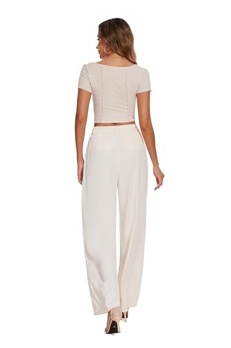 More information about FUNYYZO Women's Loose Pleated Front Long Pants Wide Leg Trousers Solid Causal Dressy